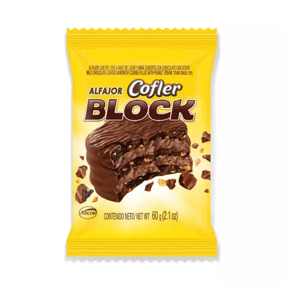 Cada Alfajor Block Triple está elaborado con una base suave y esponjosa que realza el sabor y la textura, acompañada de tres generosas capas de dulce de leche cremoso, cuidadosamente seleccionadas para ofrecerte la máxima indulgencia. Su cobertura de chocolate de alta calidad completa esta joya gastronómica, aportando un equilibrio perfecto entre dulzura y suavidad.